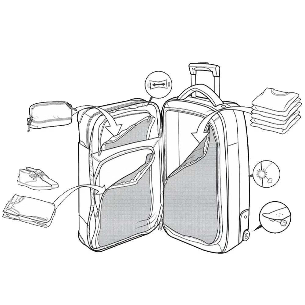 - 2 Hauptfächer mit CRAM-Zonen, Unterteilungen und 2-Wege-Reißverschlüssen