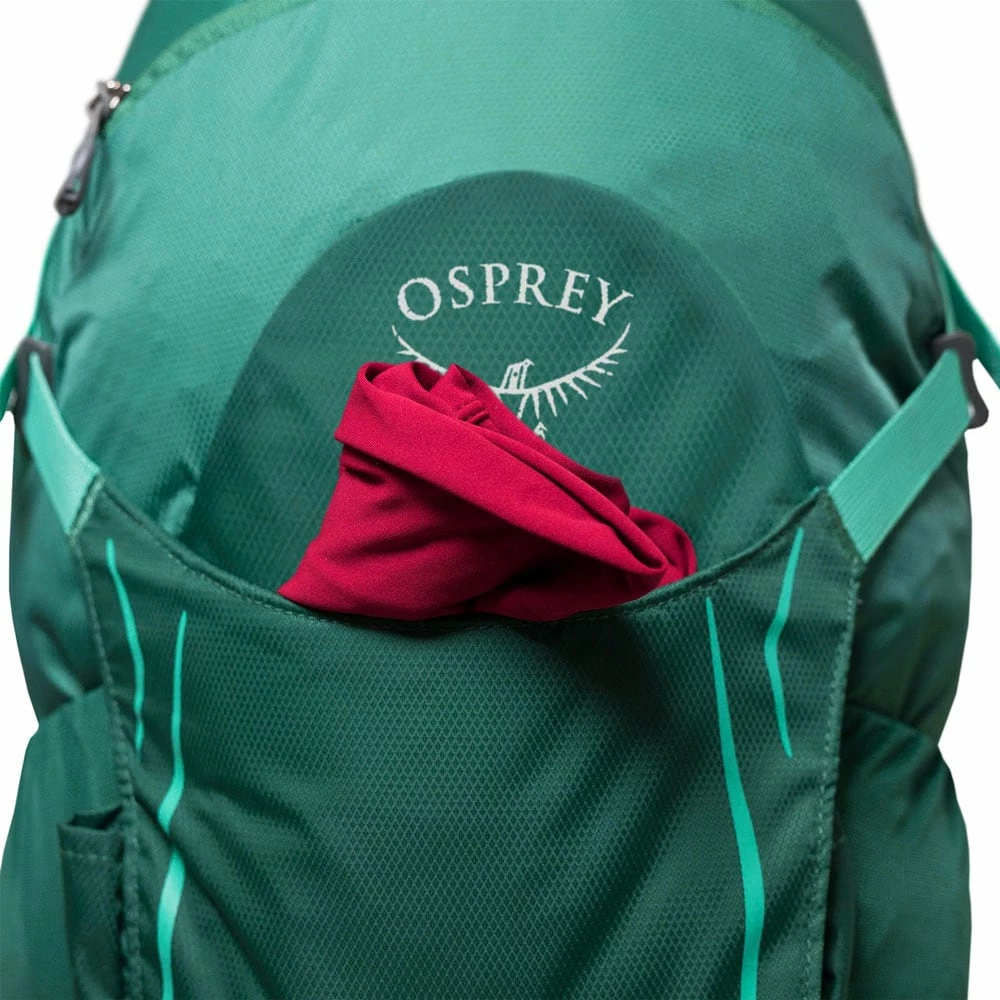 Den Ospray Backpack überzieht ein robustes Obermaterial, welches ein Gesamtvolumen von 26 Litern beherbergt. Dieses konzentriert sich auf ein geräumiges Hauptfach, welches über einen 2-Wege-Reißverschluss zugänglich ist und über ein integriertes Trinkblasenfach verfügt. Für einen weiteren Flüssigkeitsvorrat bieten sich elastische Einstecktaschen seitlich des Rucksacks an. Während schnell zugängliches Kartenmaterial sowie Regenbekleidung im Vorderfach des Hikelite platziert werden kann, finden empfindliche Wertgegenstände im kleinen Reißverschlussfach Schutz. Sollte dein Weg von einem Regenschauer gekreuzt werden, so trägt eine Regenhaube zum Schutz deines Gepäcks bei. Diese befindet sich im Bodenfach und lässt sich bei Bedarf zügig über den gesamten Rucksack stülpen.